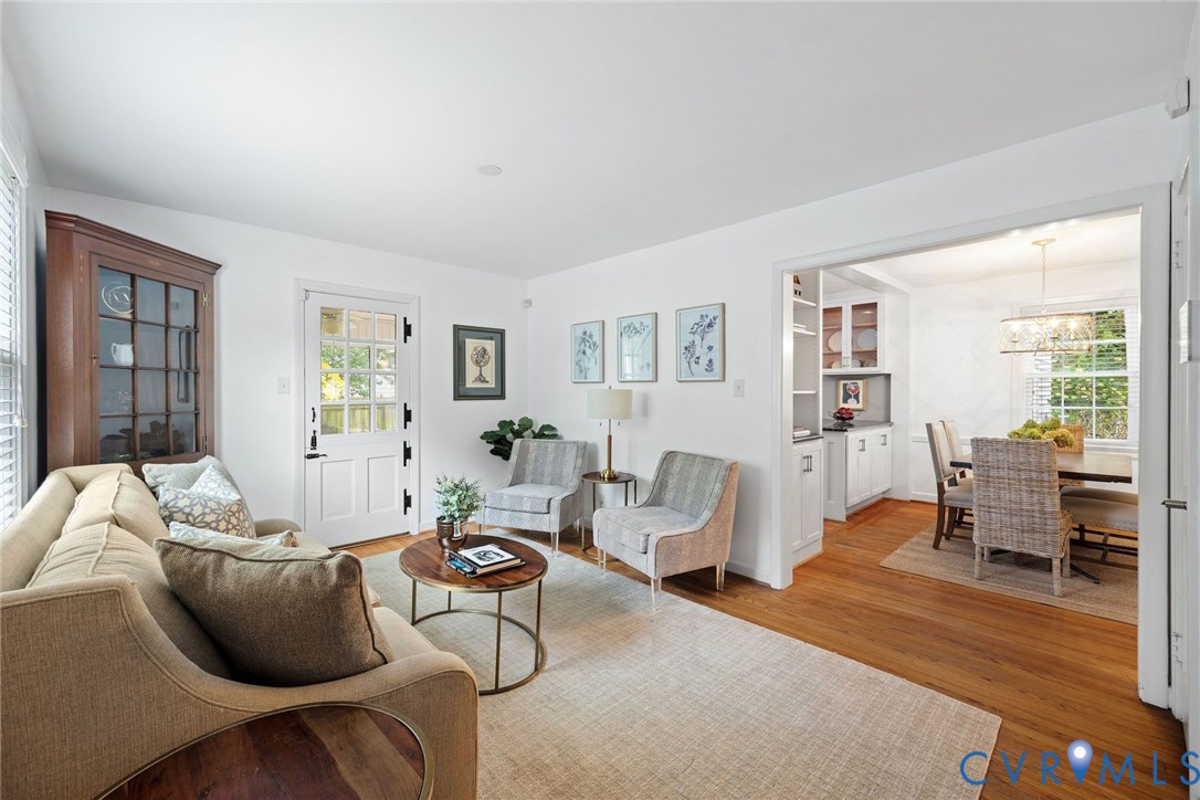 Charming brick Cape in prime West End location! Ideally situated within walking distance of Willow Lawn and the Libbie/Grove/Patterson shopping and dining district, this delightful residence features 4 bedrooms and 3 (an unusual bonus!) full baths. Hardwood floors, fresh paint, custom blinds and good closet space enhance the appealing layout. The light-filled living room adjoins a cozy sunroom and flows seamlessly into the open kitchen and dining area. The renovated kitchen boasts abundant white cabinetry, granite countertops, tile backsplash, and stainless steel appliances, and connects to a spacious mudroom/laundry room. Two comfortable bedrooms and an updated hall bath complete the main level. A newly carpeted staircase leads to two large upstairs bedrooms and 2 full baths, including a primary suite with walk-in closet, new carpet and an ensuite bath with heated floor. Set on a large, beautifully landscaped lot, the property features a fenced backyard with a patio, enclosed garden, and an expanded outbuilding. Additional highlights include a tankless water heater, new 2nd floor HVAC system (2025), and irrigation and security systems. A fantastic opportunity in one of Richmond’s most desirable neighborhoods!